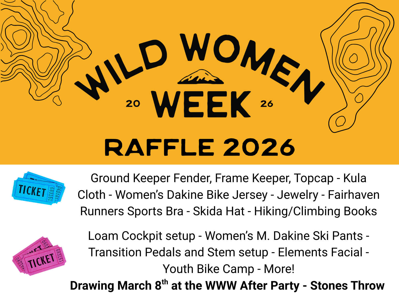 Raffle tickets are sold at every event during Wild Women Week. Check in with the Shifting Gears representative at your event to purchase!
